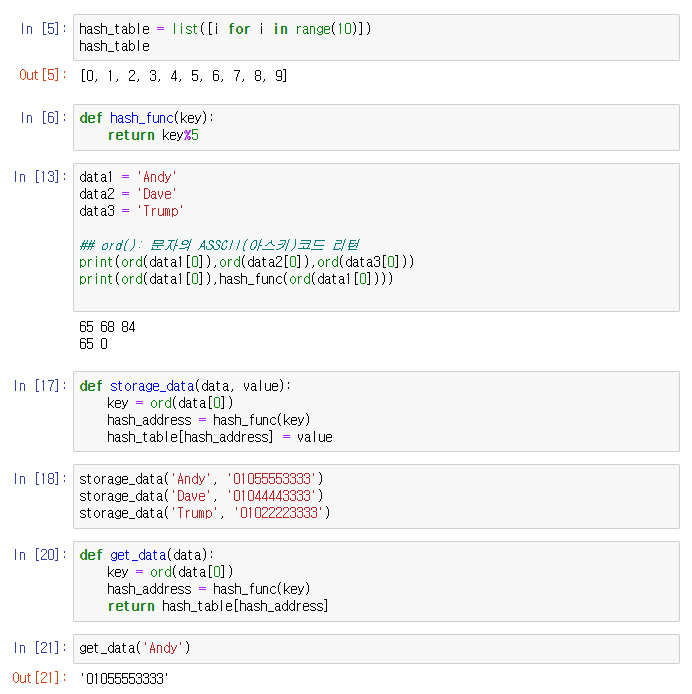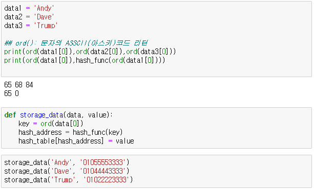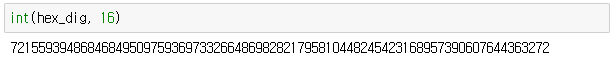※ hex_dig 의 경우 문자열(str)이므로 해쉬 함수(ket % n)실행 불가,