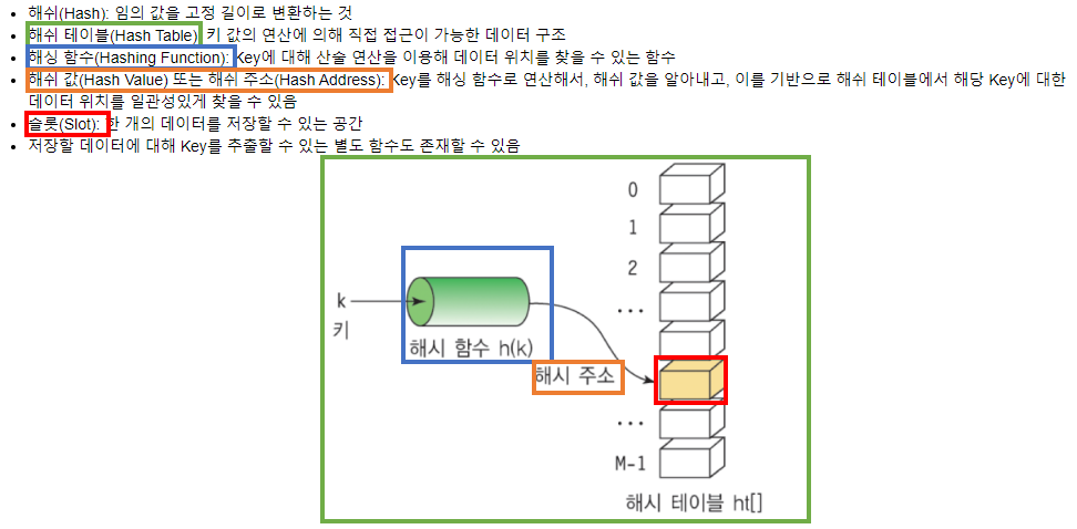 해쉬 테이블(hash table) : 키(Key)에 데이터(Value)를 저장하는 데이터 구조