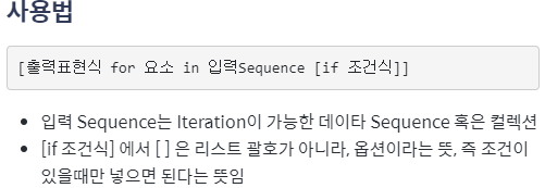 - i for i in range(10)은 리스트 컴프리헨션입니다. 이것은 0부터 9까지의 정수를 순회하면서 각 숫자를 새로운 리스트에 추가하는데 사용됩니다. 즉, 이 코드는 [0, 1, 2, 3, 4, 5, 6, 7, 8, 9]와 같은 리스트를 생성합니다.