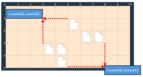 - 정답배열을 사사분면 기준으로 가정하여, 첫번째클릭(x1,y1), 드래그의 끝(x2,y2)라고 하겠다.