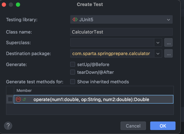 - 클래스 명에 우측 클릭(혹은 command + n)