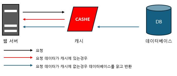 - 캐시에 데이터있으면 데이터베이스를 거치지않고 데이터를 반환