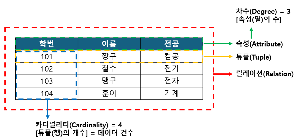 - 카디널리티(Cardinality) = 튜플(행)의 수