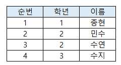 5. 아래 내용을 확인하여 괄호 안에 용어를 표안에 알맞는 값을 고르시오.