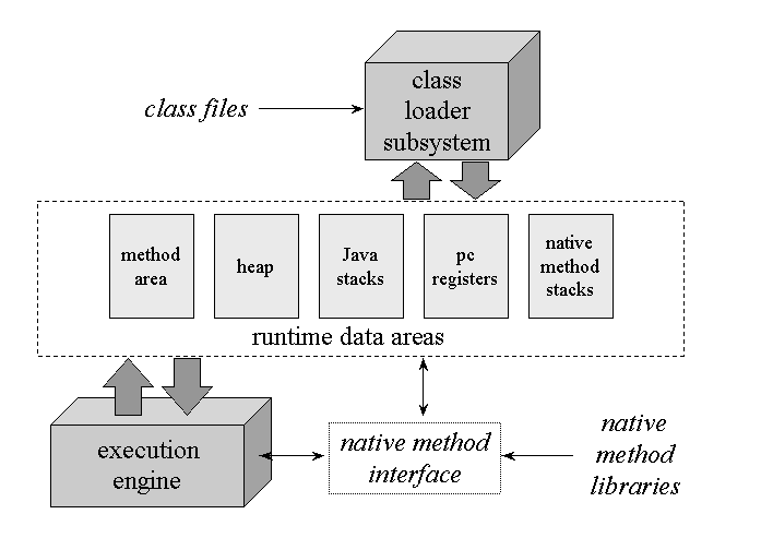 - Native Method Interface(JNI) : JVM에 의해 실행되는 코드 중 네이티브로 실행하는 것이 있다면 해당 네이티브 코드를 호출하거나 호출 될 수 있도록 만든 일종의 프레임워크