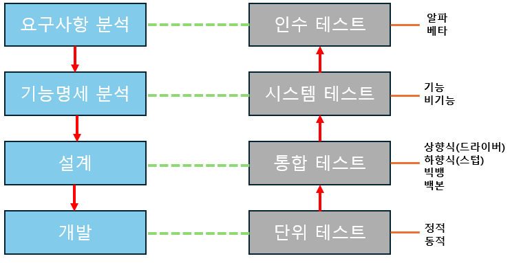 - 테스트 케이스 : 요구된 기능을 제대로 수행하는지 확인하기 위해 설계된 조건, 입력값, 예상 결과의 집합