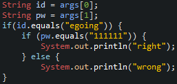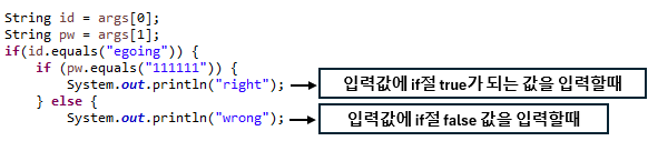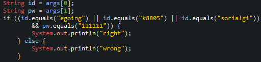 id가 "egoing", "k8805", "sorialgi" 중 하나(or) 이면서(and) pw가 "111111"이면 true 출력