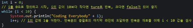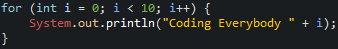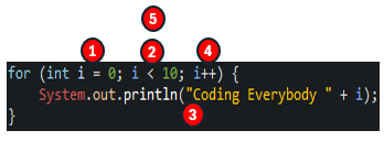 for (int i = 0; i < 10; i++)에서 각 항의 의미