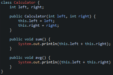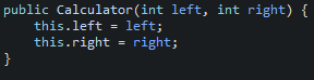 생성자 덕분에 Calculator 객체를 사용하기 위해서 사실상 반드시 필요한 작업이라고 할 수 있는 좌항(left)과 우항(right)의 값을 설정하는 과정을 객체 생성 과정에서 강제할 수 있게 되었다.