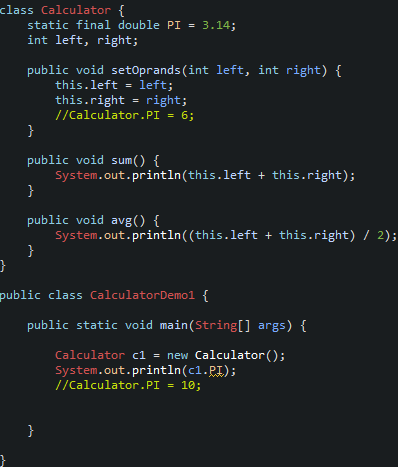 상기 코드에서 주석처리된 PI값을 변경하려는 코드는 오류가 발생한다.