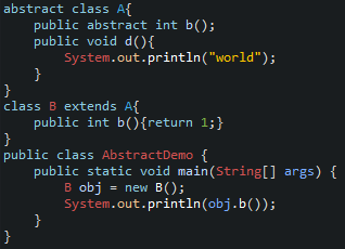 public abstract int c(){System.out.println("Hello")} - 추상 클래스에는 추상메소드가 아닌 메소드가 존재 할 수 있다.