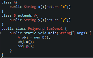 클래스 A에는 메소드 y가 정의되지 않았기 때문에 오류가 발생한다.