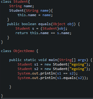 equals는 객체와 객체가 같은 것인지를 비교하는 API이다
