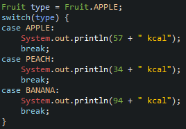 위의 예제에서는 Fruit가 말하자면 열거인 셈이다.