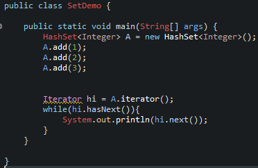 - A.iterator();를 통해 hi = {1,2,3}가 생성되고