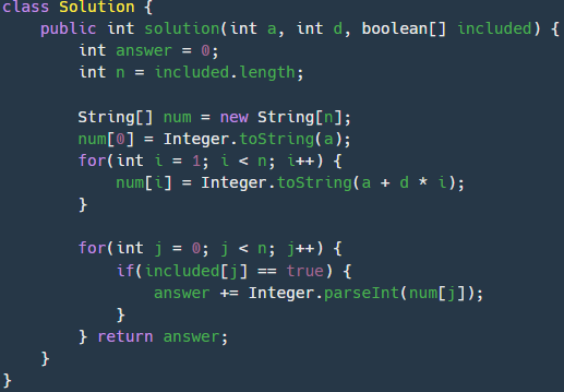 다른방법 : - 어짜피 included의 요소들이 boolean값이므로 if에 바로 대입하여 true 경우만을 answer에 더해주면됨