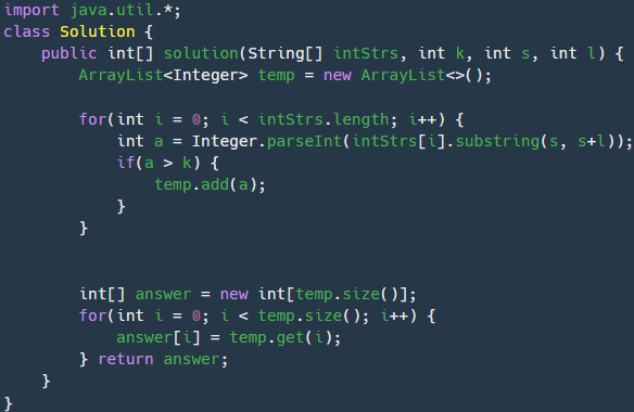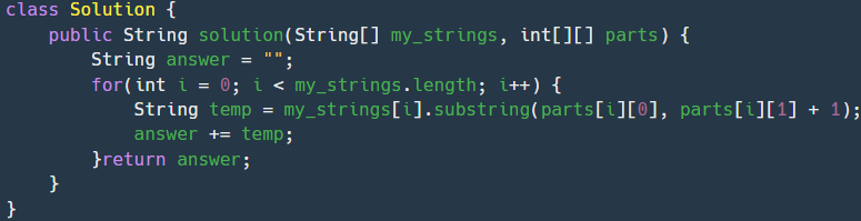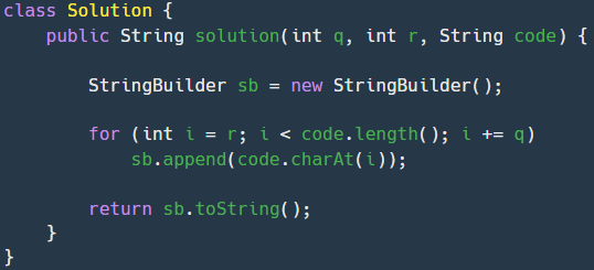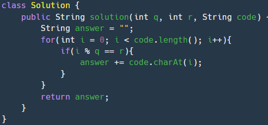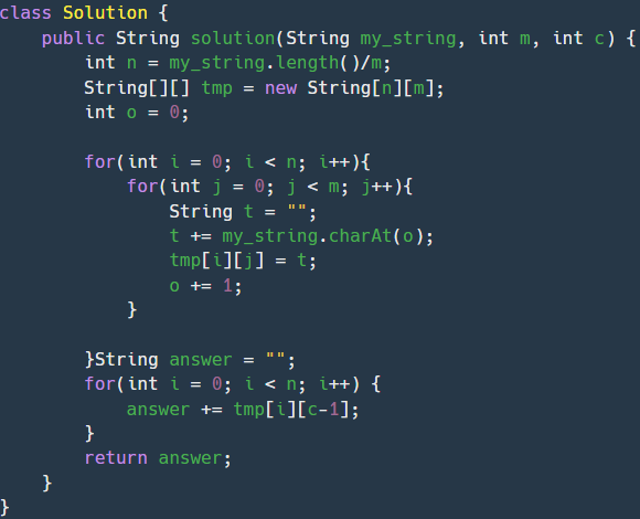 다른방법 : for문을 통해 c번째(c-1번째 인덱스) 문자를 문자열 answer에 추가하며 i가 m 씩 증가하게되면 같은 답을 구할 수 있다.