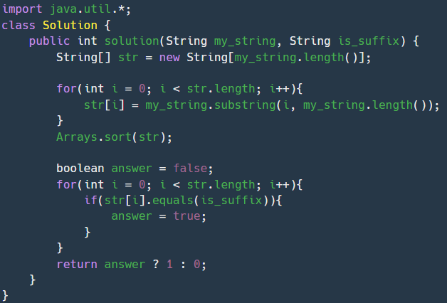 - 사용명령어 : str1.startsWith(str2) → 접두사인지 확인하는 메소드