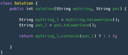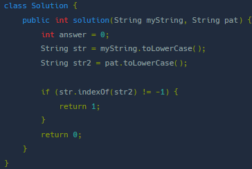 - 사용명령어 : str1.contains(st2) → 문자열 str1에 문자열 str2가 포함되어있는지 확인 포함되면 true 아니면 false 반환 str.toLowerCase(); → str문자열의 모든 요소를 소문자로 변환 다른방법 :