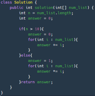 변수 answer에 대해서 경우의 수가 2가지 뿐이다. 그러므로 삼항연산자를 통해서 경우에 따른 변수 answer의 값을 곱일땐 1로 합일땐 0으로 하게해서 if문을 진행한다.
