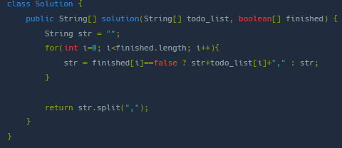 - 빈 문자열 str 선언 - 삼항연산자를 이용해 false인 경우 문자열연산 ex) ("practiceguitar",) ("studygraph",) - (,) 기준으로 split 진행 ※ split(구분자) : 문자열을 구분자로 분리하여 문자열 배열로 반환