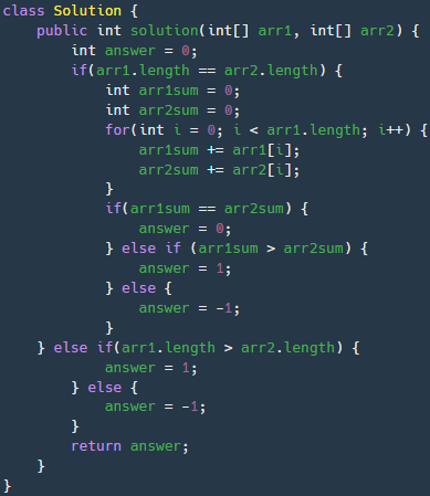 배열 비교하기 - 1일차에 내가 작성한 코드