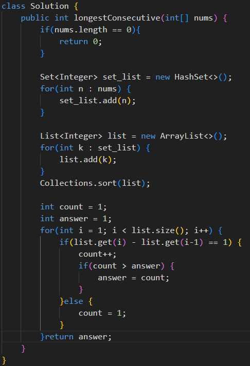 - 반복문을 통해 연속된 수의 최대 길이 반환