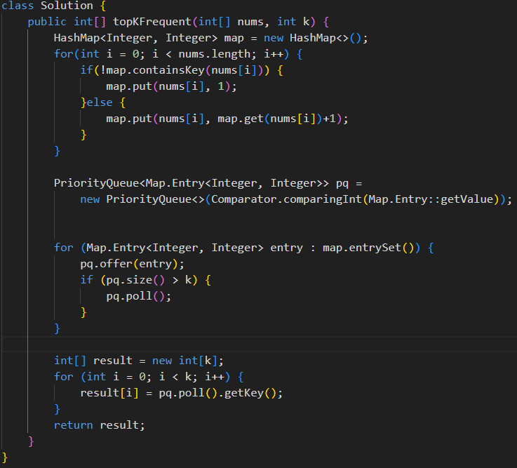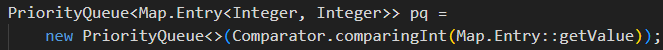- PriorityQueue<Map.Entry<Integer, Integer>> pq = new PriorityQueue<>(); → 선언