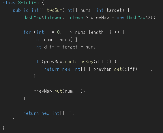 ※ 해당 HashMap은 배열 nums의 요소를 key값으로, index를 value로하여 저장하는 방식이다.
