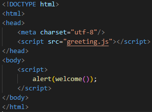위와 같이 src="greeting.js" 이 모듈화 같은 것 이다.