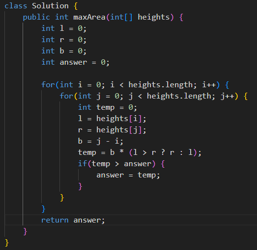 4. left값과 right값을 인덱스로 갖는 heights의 값을 비교하여 작은 쪽의 값의 인덱스를 증가시키며 최대치 찾기