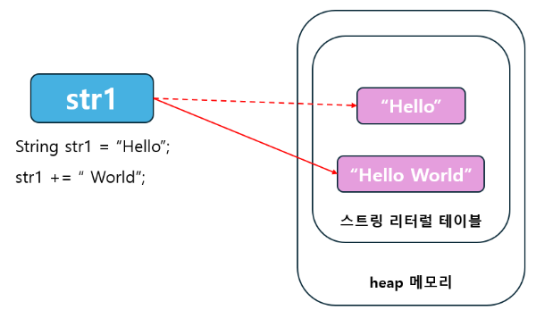 - 연산자 사용 시 새로운 객체가 생성되어 비효율적